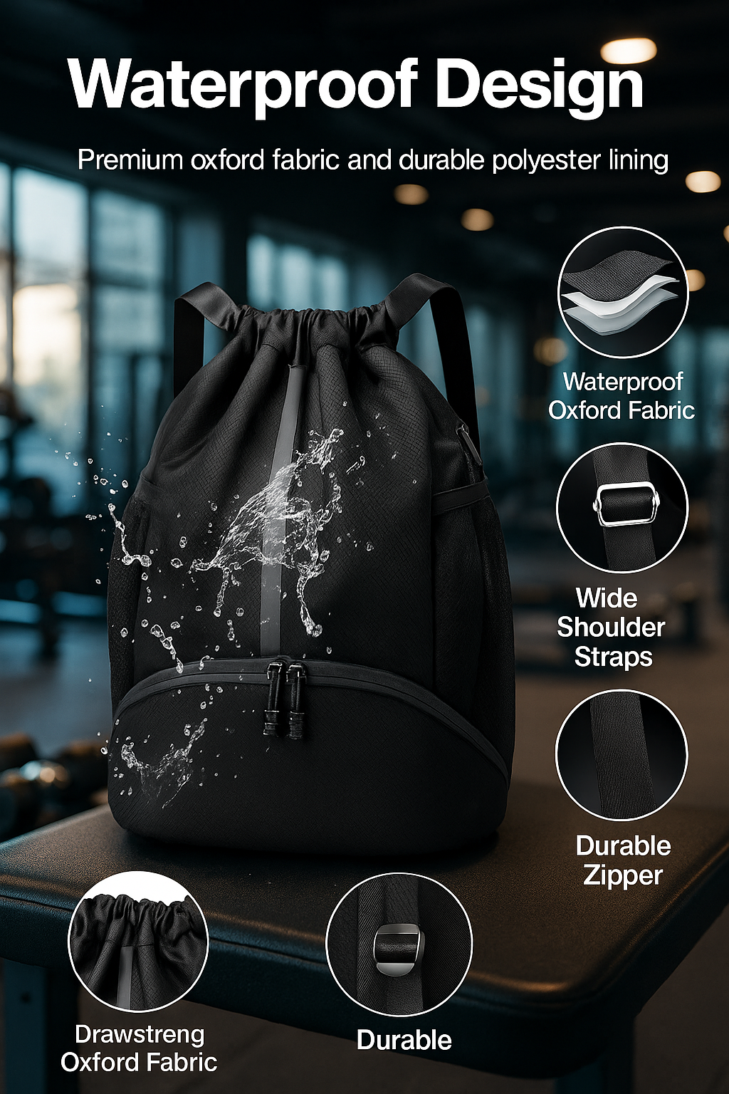 βA durable, lightweight gym bag with spacious storage, waterproof fabric, and comfy straps, built to keep your essentials organized effortlessly.β
